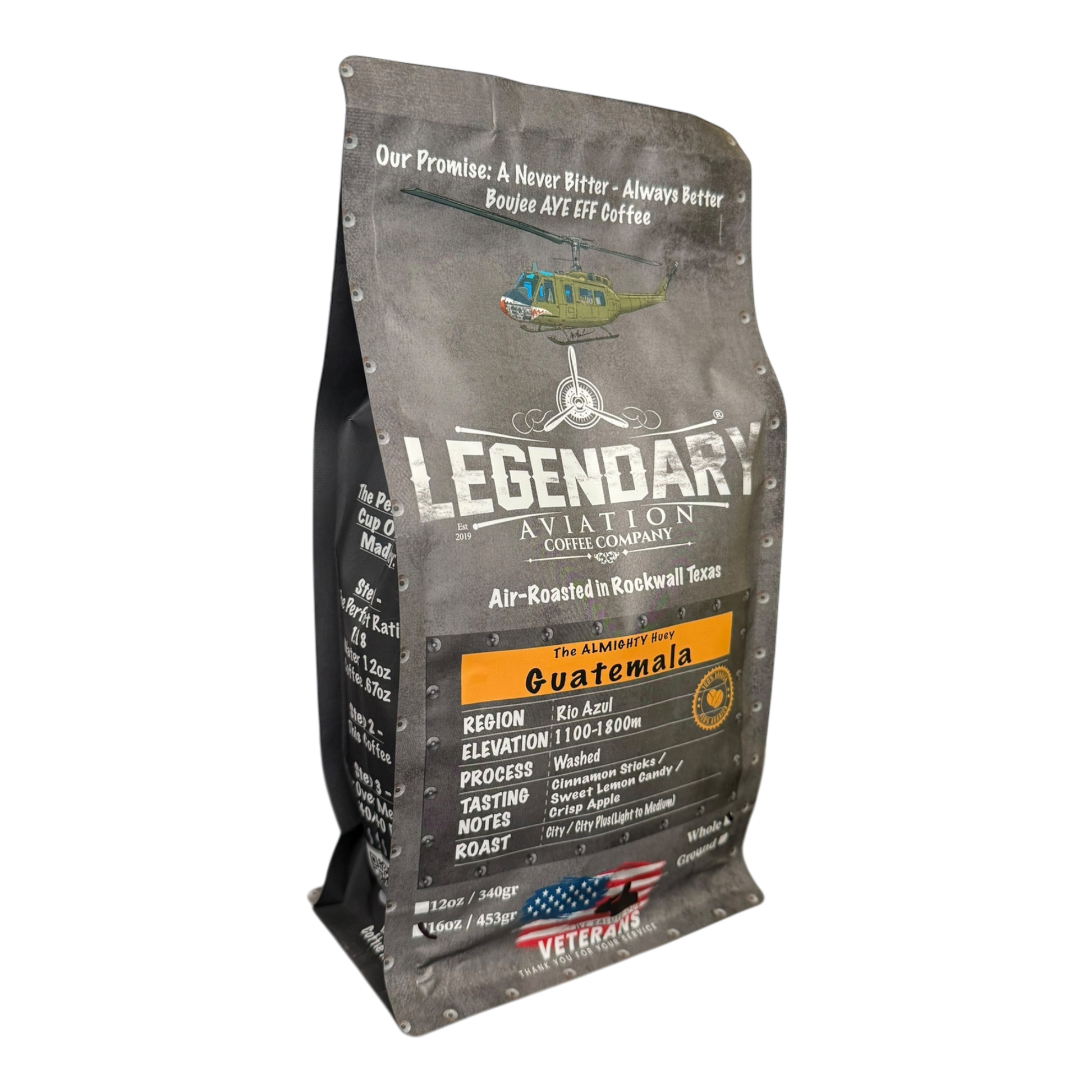 Introducing the ALMIGHTY Huey Guatemala Coffee from Legendary Aviation Coffee Company, a well-rounded roast that pays tribute to the legendary Huey helicopter. This exceptional coffee hails from the remote town of Jacaltenango in Guatemala’s Rio Azul region, crafted by the skilled farmers of Coop Rio Azul.