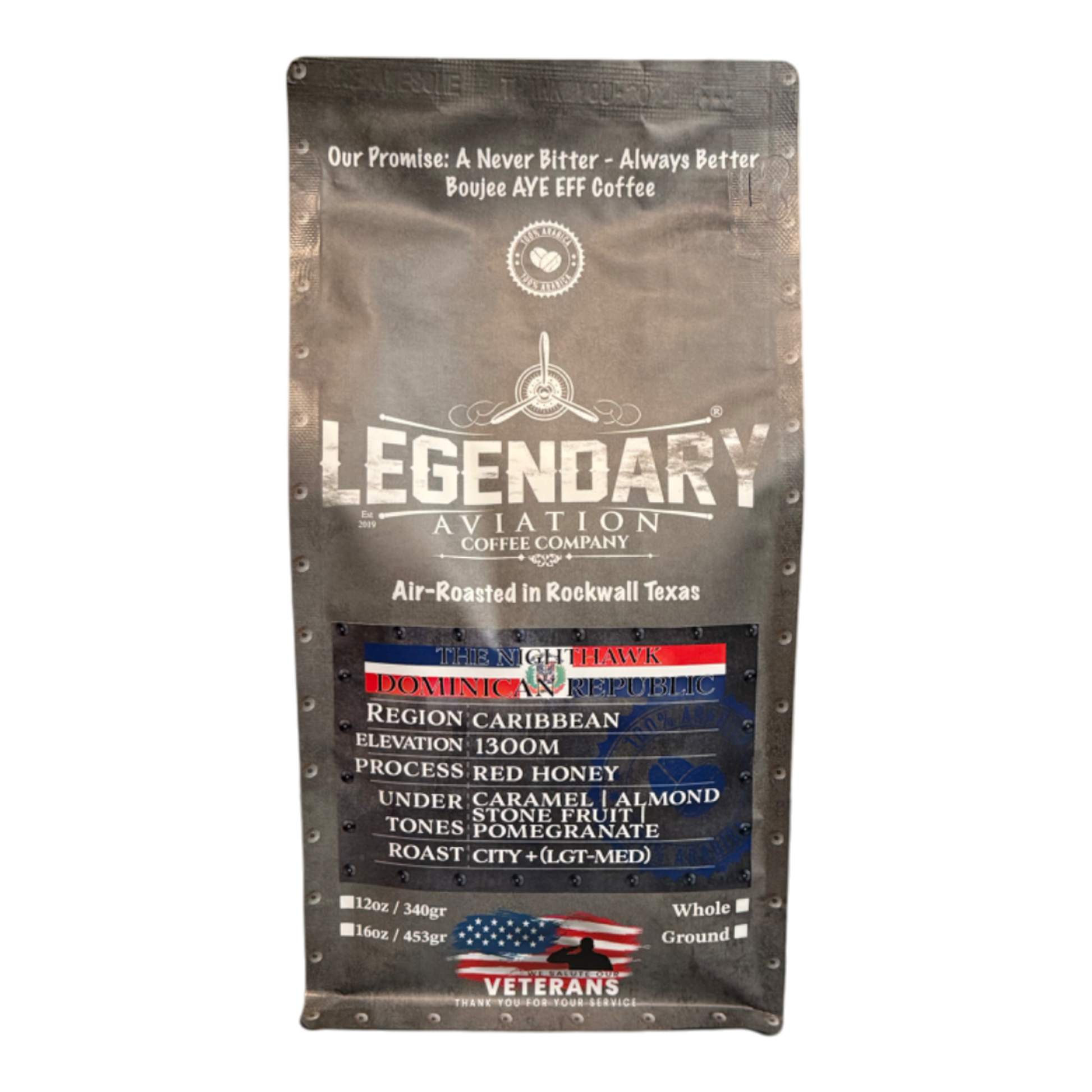 Prepare for a stealthy smooth coffee experience with the F-117 Nighthawk, our highest-rated coffee to date. Just like its namesake, this 92-point CoffeeReview-rated Dominican Republic estate coffee flies under the radar with precision and impact. With a Red Honey process, this single-origin masterpiece delivers a rich, low-acidic profile, loaded with caramel, almond, stone fruit, and pomegranate undertones.