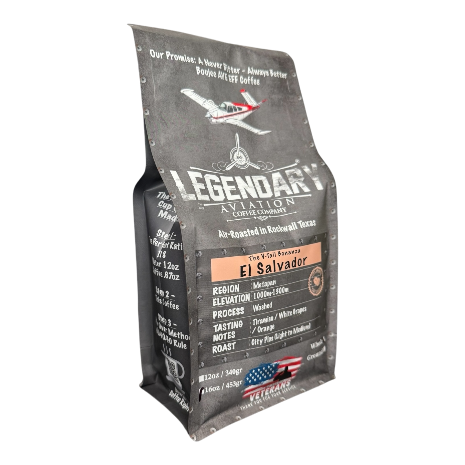 Experience the excellence of our V-Tail Bonanza El Salvador Coffee, inspired by the legendary Beechcraft Bonanza aircraft. Sourced from the Metapan region of El Salvador, this coffee is a tribute to craftsmanship and quality. Grown at elevations of 1000-1300 meters, our Pacas and Bourbon variety beans undergo a meticulous washed process, resulting in an impressive City Plus (Light to Medium) roast.
